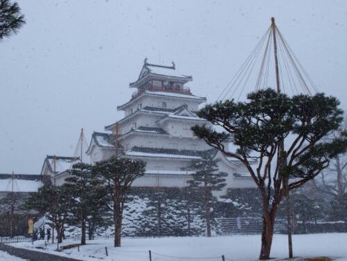 ↑昭和になって再建されたコンクリート製の会津若松城。城はやはり昔のままのものでないと感動しない。中を見学し終えて出てきたら突然のこの吹雪。 飯盛山の階段。雪のせいで完全に凍りついていた。なのでここを避け、資料館の左脇にある坂を登っていった。